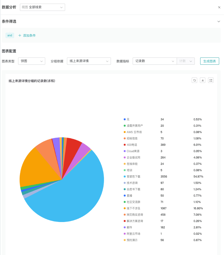 该案例中线索主要由销售专员直接录入,其中线索主要来源于线上安装包下载、官网咨询,存量用户续期、交叉销售拓展和线下拓展三种主要途径,再结合各种具体途径,可以细分为以下几种来源渠道: