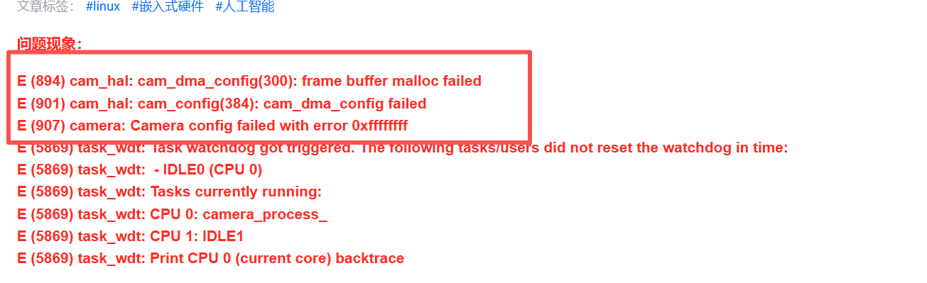 如果运行报错:cam_dma_config(300): frame buffer malloc faile;cam_dma_config failed