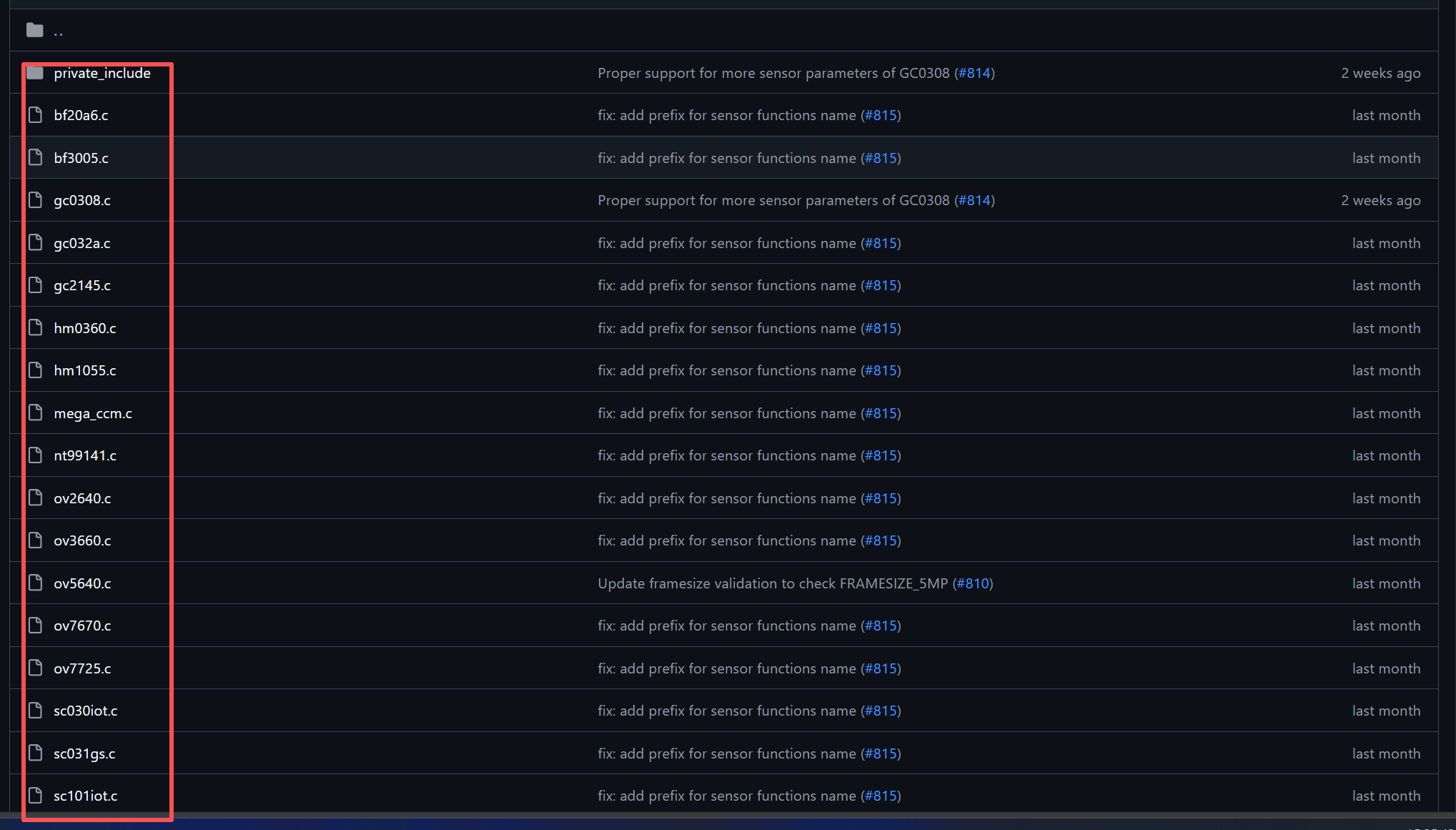https://github.com/espressif/esp32-camera/tree/master目前最新的驱动库支持的camera型号有: