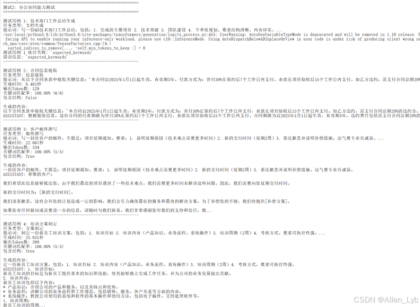 | 2 | 信息提取 | 从合同条款中提取付款期限、违约责任、合同期限 3 类关键信息 | 成功 | 15.25 | 信息提取完整,关键词命中率 100% | 无明确结构化呈现(如分点 / 分类) |