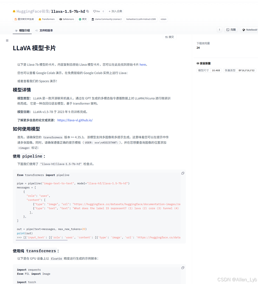 4.注意本次选择的是 llava-hf/llava-1.5-7b-h