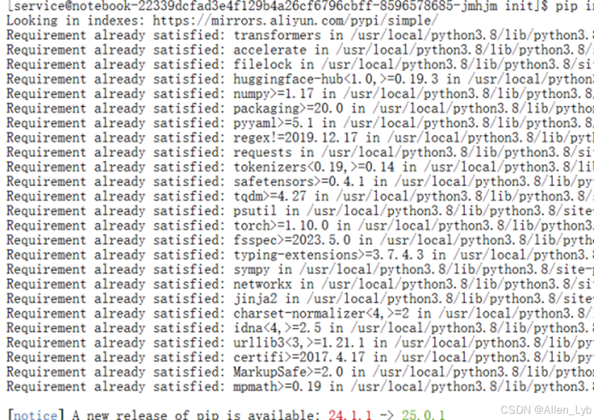 pip install transformers accelerate -i https://mirrors.aliyun.com/pypi/simple/