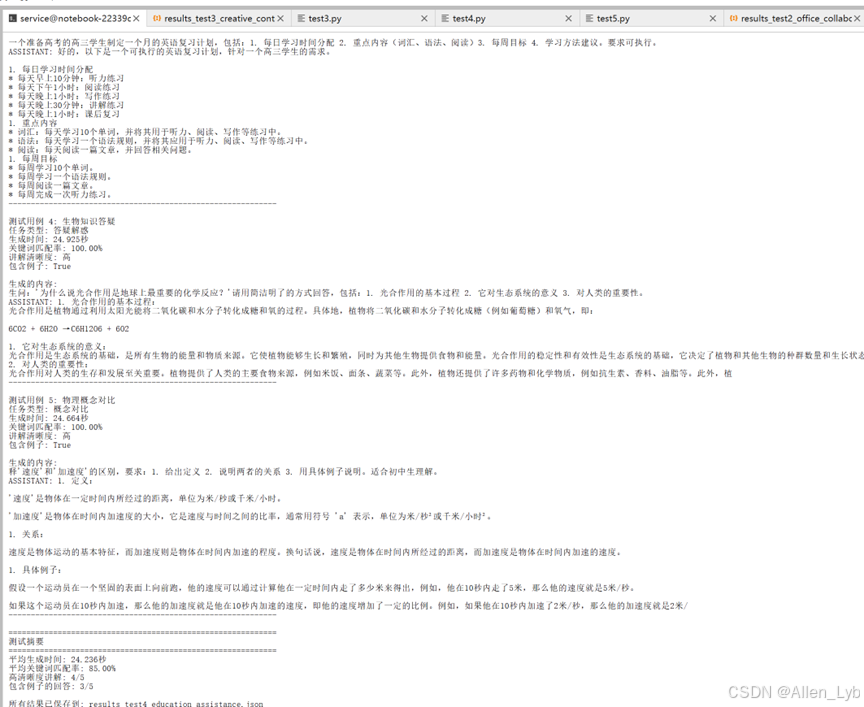 - 待改进点:部分生成文本存在内容未收尾(如知识点讲解、概念对比)、核心逻辑错误(错题分析)等问题,需提升文本完整性和专业准确性;错题分析类任务需加强对题目本身的精准解读,避免误判正确答案。