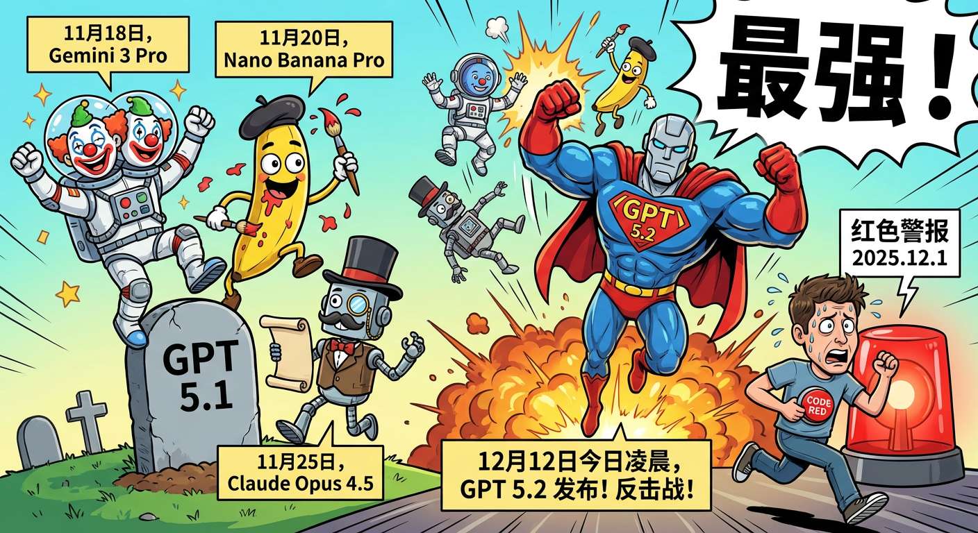 12月12日,也就是今日凌晨,OpenAI打响反击战,GPT 5.2发布。
