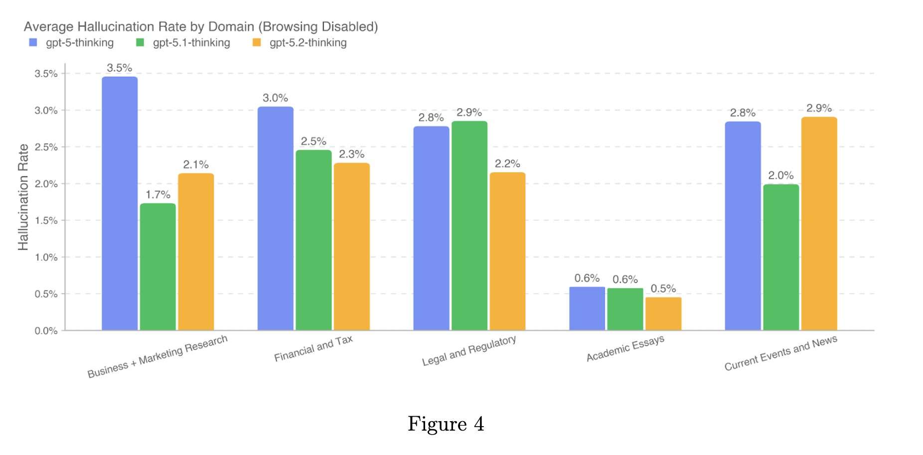 GPT-5.2在商业、金融、法律等专业领域的错误率都比之前版本更低,内容更准确;学术写作也更稳健。