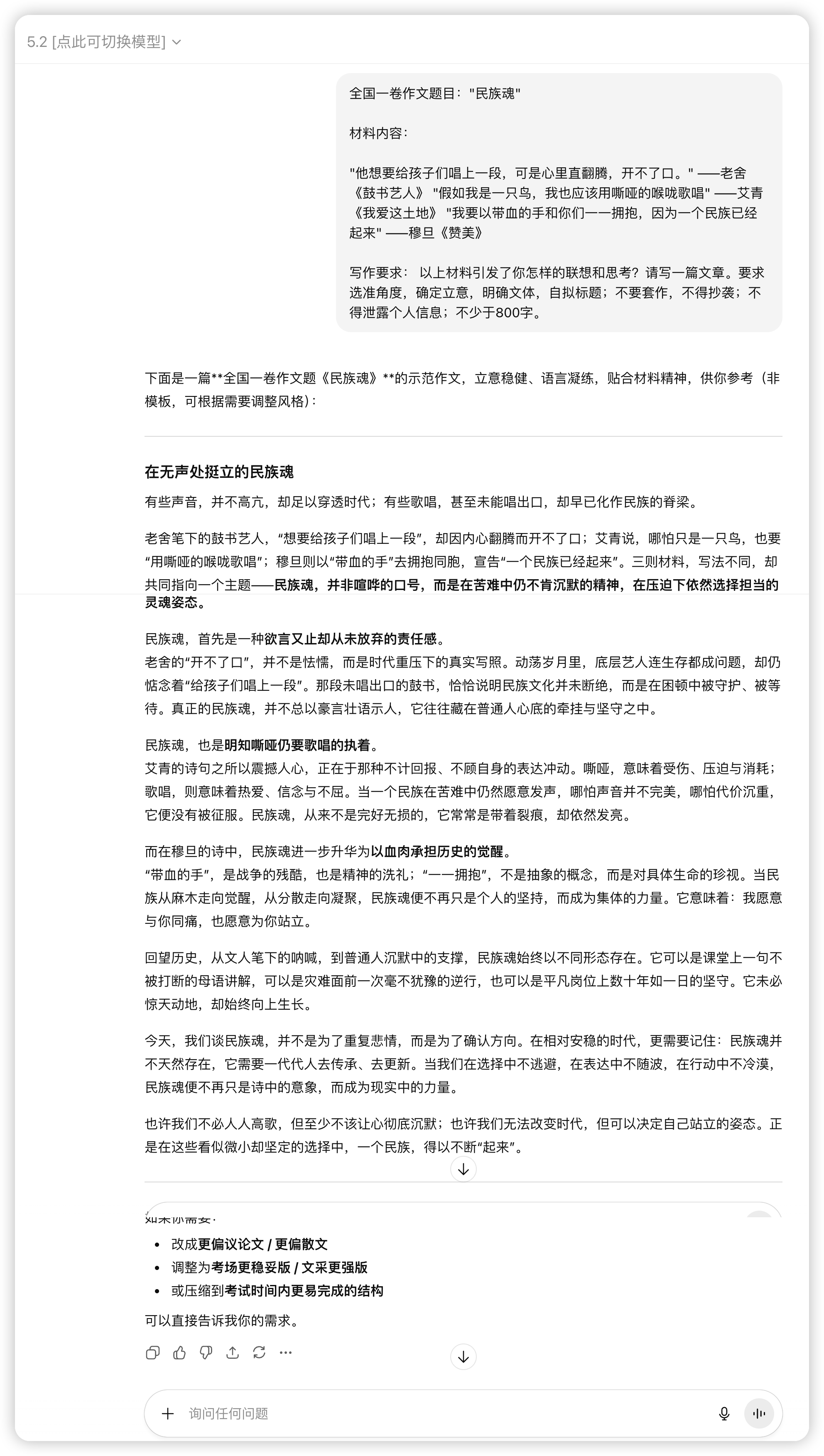 GPT-5.2在写作方面相比GPT-5.1更聪明、更实用。