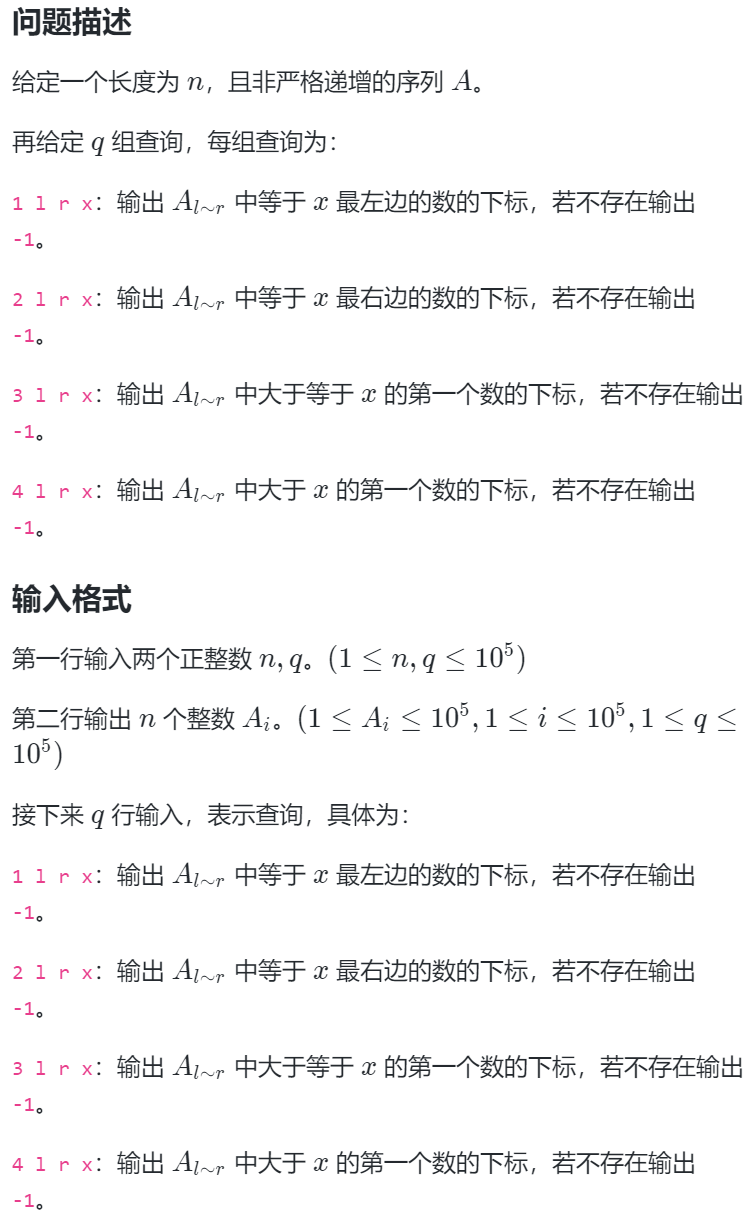 low = bisect.bisect_left(A, x) + 1 # 全局第一个 >= x 的下标(1‑based)