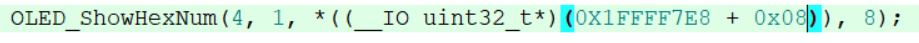 OLED_ShowHexNum(3, 1, *((__IO uint32_t*)(0X1FFFF7E8 + 0x04)), 8);