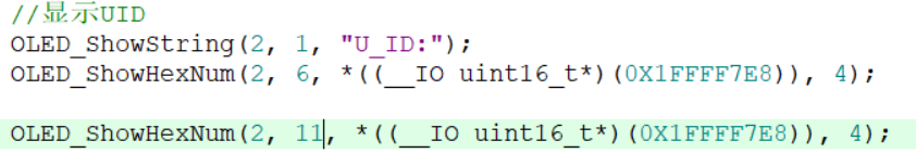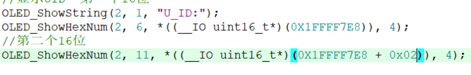 OLED_ShowHexNum(2, 11, *((__IO uint16_t*)(0X1FFFF7E8 + 0x02)), 4);
