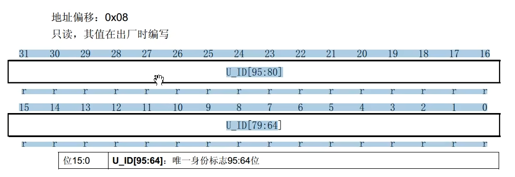 地址就是手册里面的基地址,我们显示一下芯片的ID。这时第一个16位。