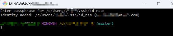 3、打开git-bash就会要求输入passphrase,输入以后会提示Identity added,以后再打开就不用验证密码了