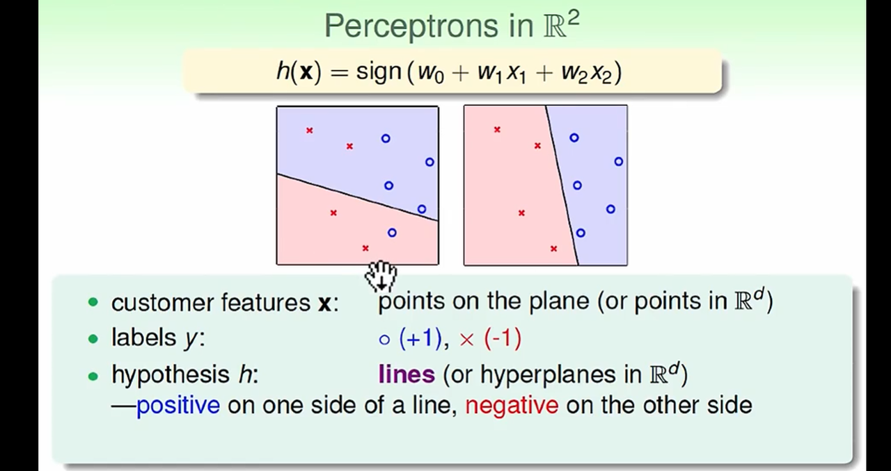 经过变换之后得到h(x),这个threshold其实就是常见的 f(x) = WX + b中的b,直线公式就是WX + b = 0