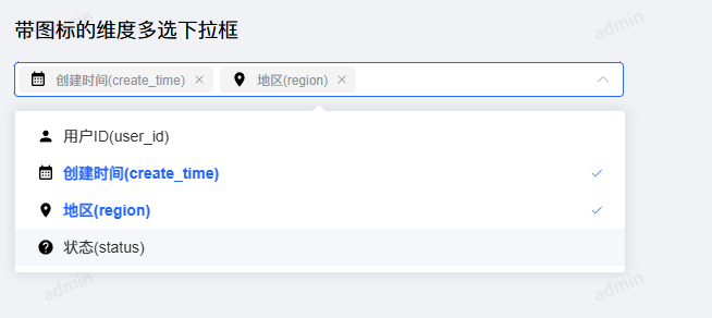 <h3>带图标的维度多选下拉框</h3>