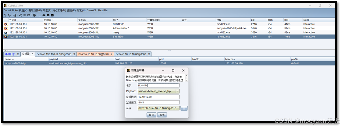 dc-4444: Listener 的名称 。在PC上执行 payload 后,它会回连到dc-4444,从而脸上团队服务器。