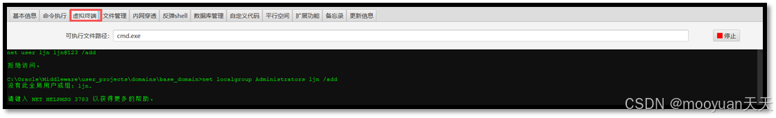 植入木马 :成功利用后,向Web服务器注入内存马,获得初步控制权。