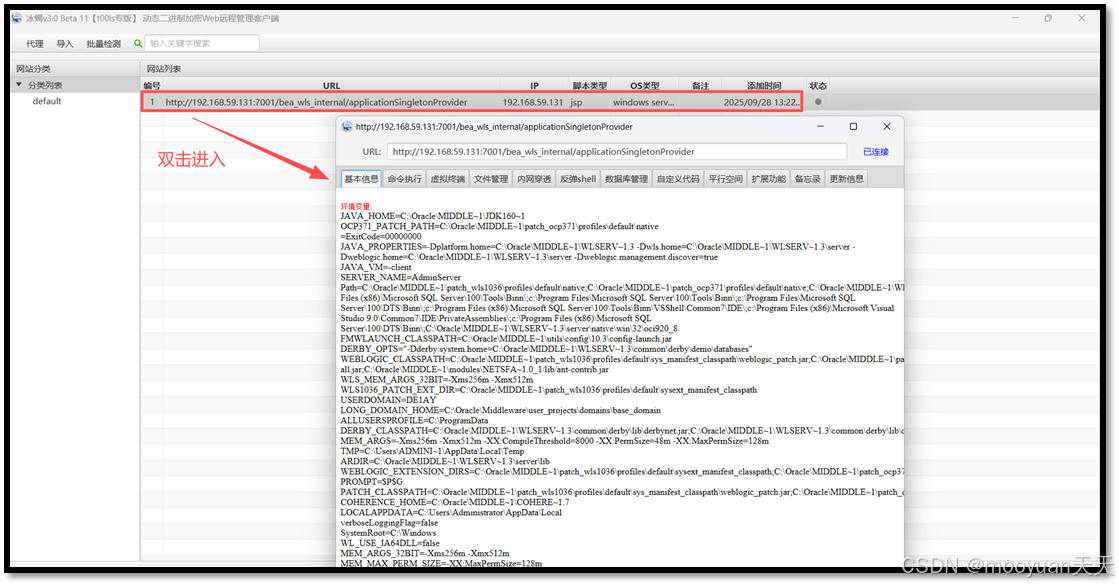 双击界面生成的会话,如下所示成功连接冰蝎。
