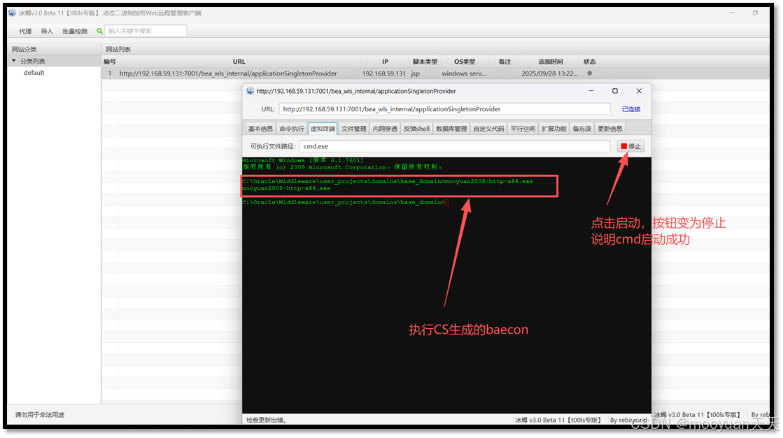 192.168.59.1)通过CS服务器(192.168.59.128)利用 Weblogic服务漏洞 ,攻击位于192.168.59.131的Web服务器。 -