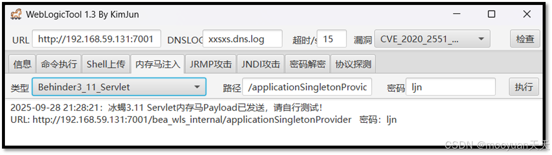 URL: http://192.168.59.131:7001/bea_wls_internal/applicationSingletonProvider 密码:ljn