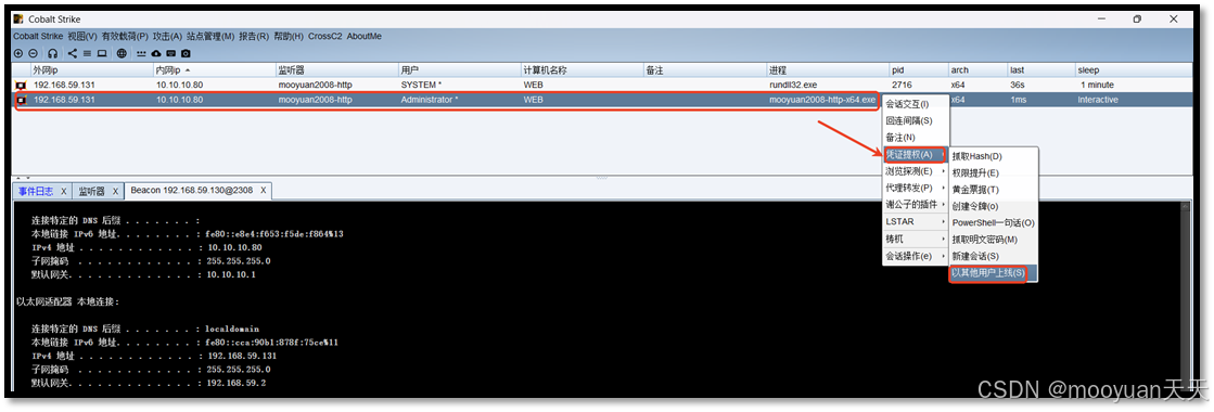 如上图示化操作是Cobalt Strike(CS)中用于身份切换和横向移动的操作,等同于执行如下命令。