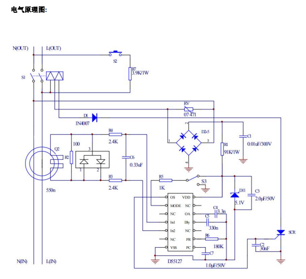 D55127 的 OS 输出脉宽大于 20ms,这意味着在检测到漏电信号后,D55127 能够迅速输出一个足够长的脉冲信号,直接驱动可控硅(SCR)进行跳闸操作。这种快速的输出脉宽确保了在漏电发生时,保护机制能够及时启动,迅速切断电源,有效保护人身和设备安全。