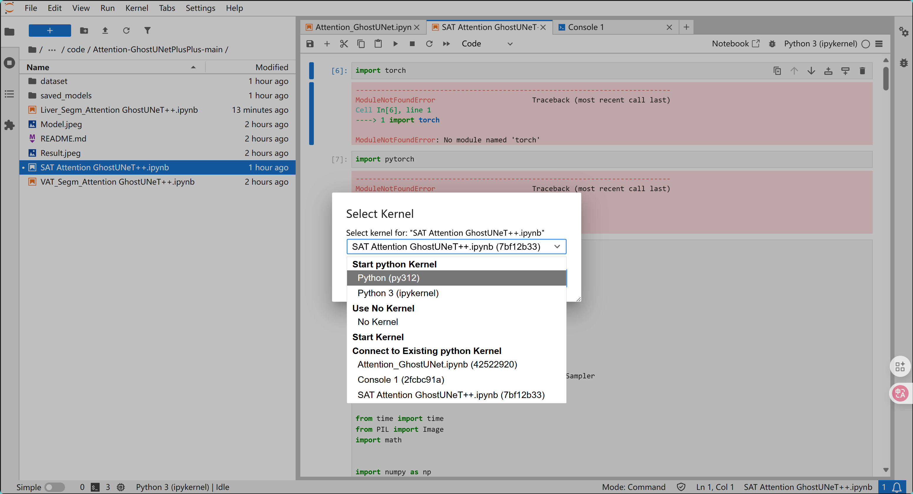 点击右上角的Python3(ipykernel),这个按钮的功能是switch kernel。