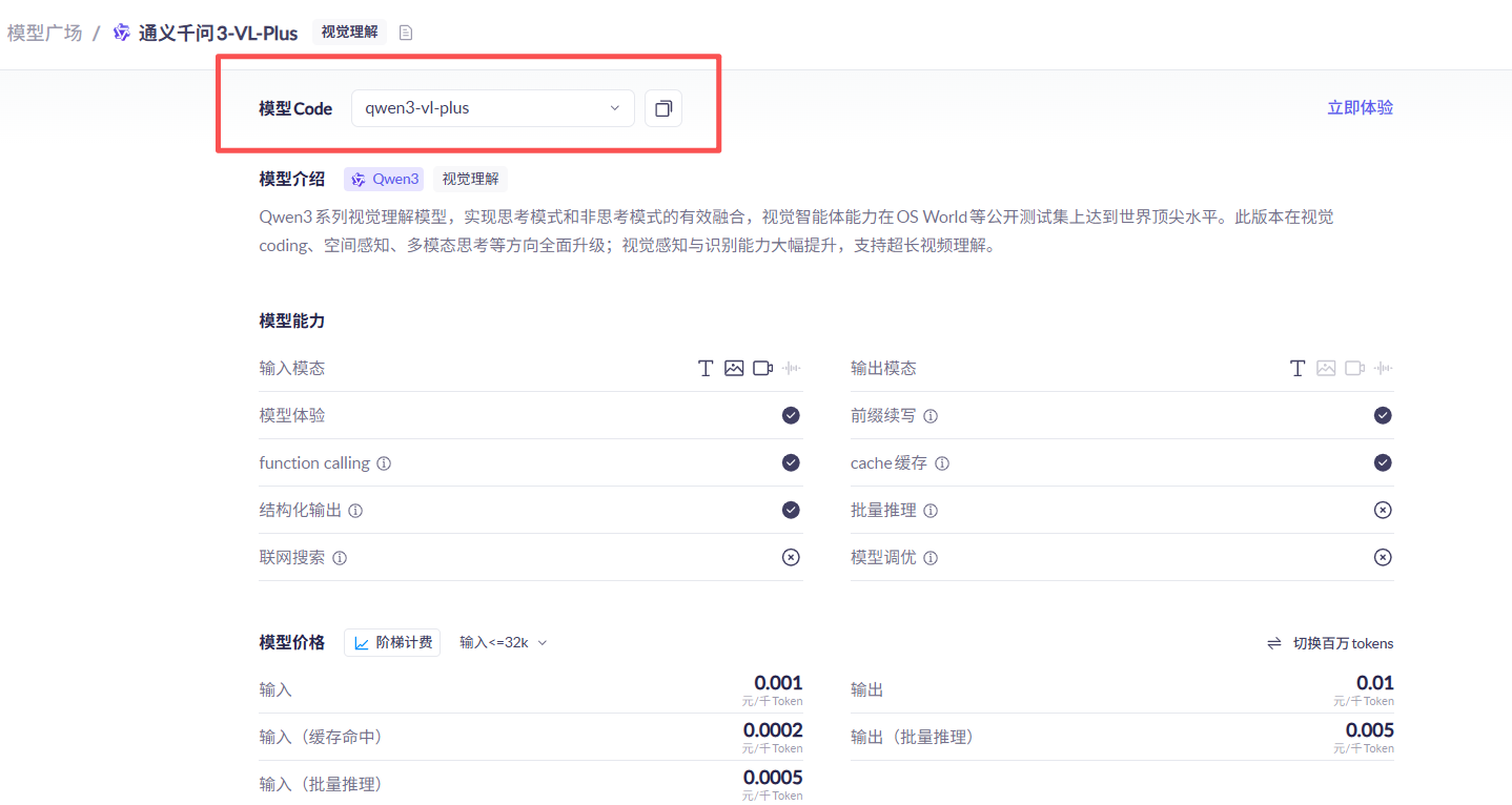 如果之前已经有申请过 API-key 的同学,我们只需要复制一下视觉模型的model就可以了