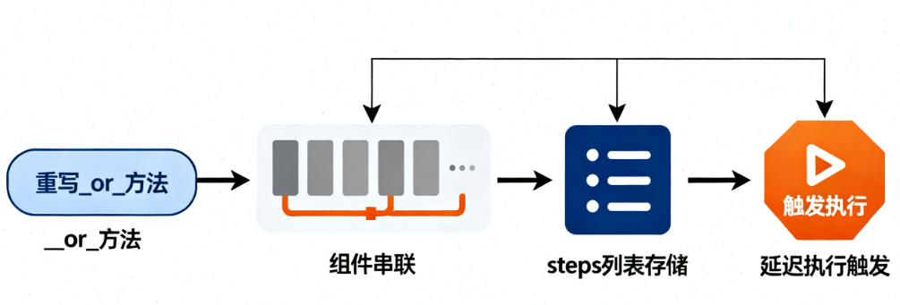 LangChain的管道符|并非Python原生功能,而是通过重写Runnable类的__or__魔术方法实现的。