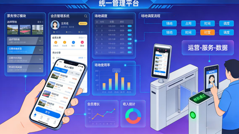 从单一场馆运营到综合业态管理,丰富的落地案例充分印证方案价值。某羽毛球馆接入系统后,线上预订占比实现跨越式提升;某体育中心通过多馆统一管理模式,同步优化运营标准与管理效率。在赛事场景中,"票务+场地+安保" 联动管理模式结合周边商品销售服务,为场馆开辟额外营收渠道;在景区与游乐园业态中,系统整合餐饮、零售等多业务模块,推动单一功能空间向综合服务中心转型,让场地从"租空间"升级为"做生态"。