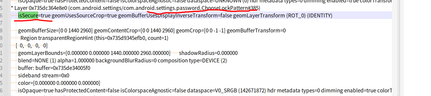 如果没有VIRTUAL_DISPLAY_FLAG_SECURE创建非安全的Display是无法展示那些安全的要求Layer,所以一般我们看到现象就是一篇黑。这也就是可以解释支付一些界面无法截图,或者截图后是一片黑的现象。