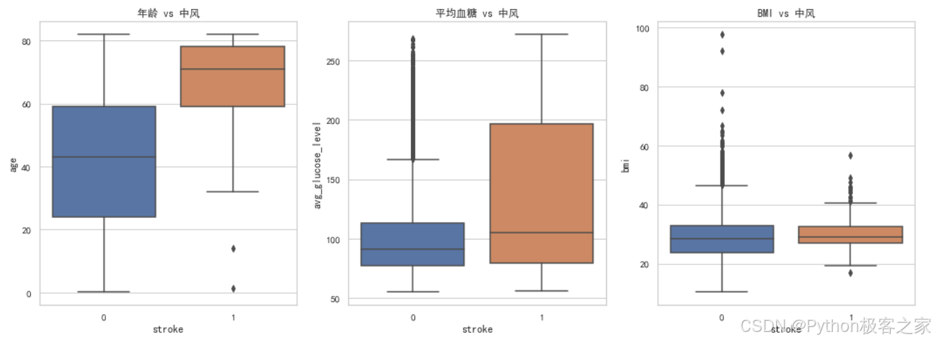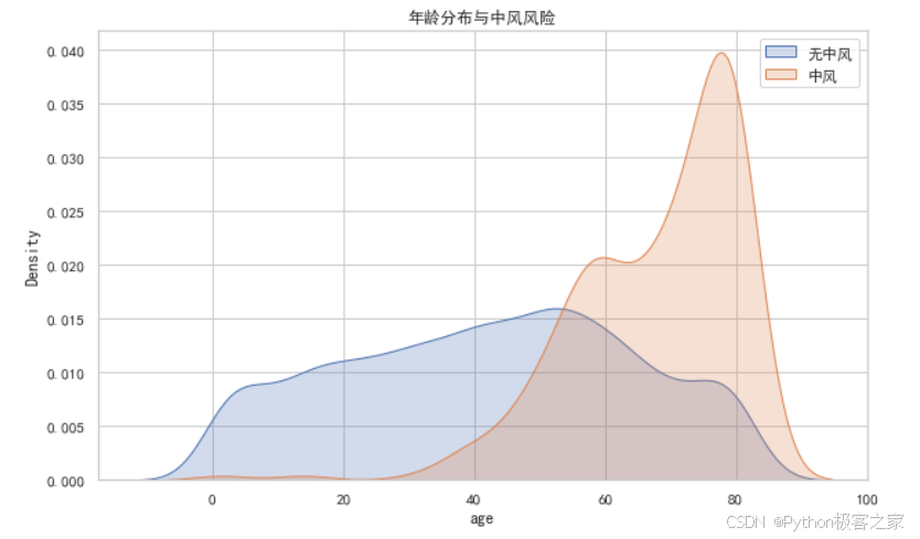 通过 seaborn 和 matplotlib 对数据进行了多维度的可视化分析,例如分析年龄、血糖水平与中风的关系。
