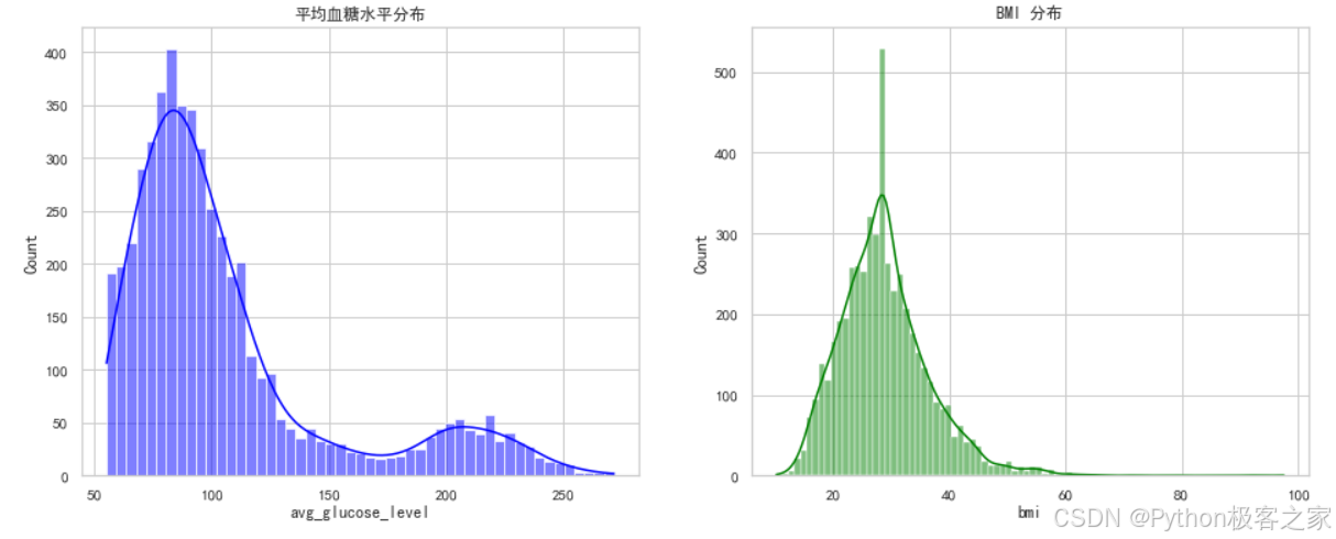 bmi列存在缺失值,我们采用均值填充策略。 - 数据清洗 : 删除了对预测无用的