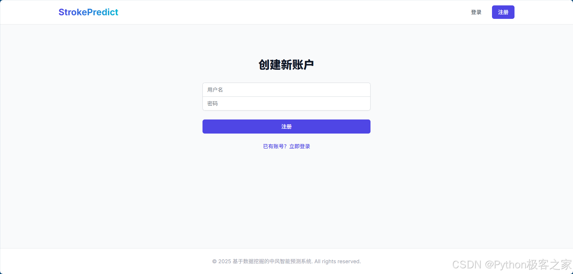 .pkl文件供 Web 层调用。 - 应用层: Flask 后端负责路由分发、业务逻辑处理(登录注册、预测逻辑)以及与前端的数据交互。