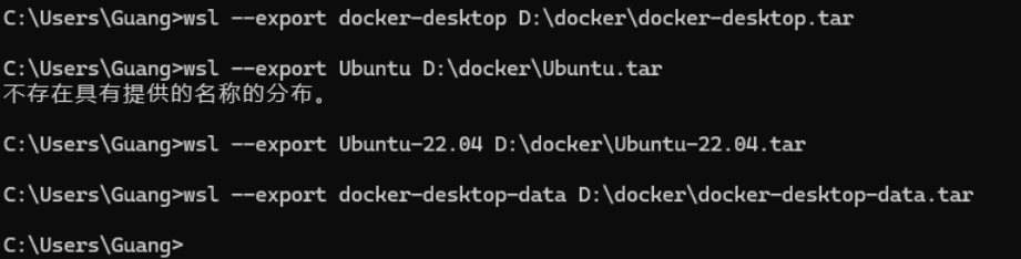 wsl --export Ubuntu-22.04 D:\docker\Ubuntu-22.04.tar