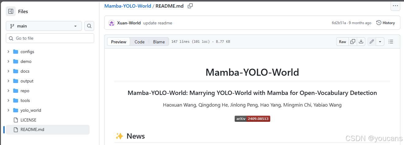 【跟我学YOLO】Mamba-YOLO-World:YOLO-World与Mamba 融合的开放词汇目标检测(https://youcans.blog.csdn.net/article/details/155461540)