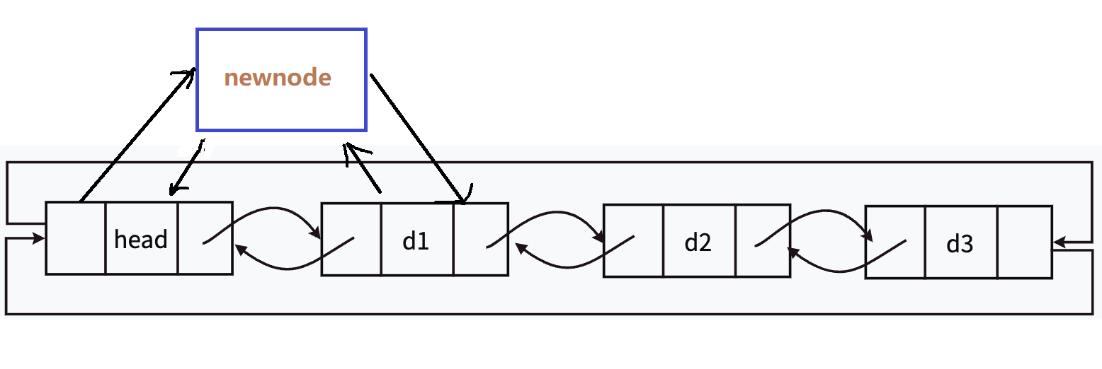 - 如果链表的头节点的前驱指针和后继指针都指向自己,说明链表为空