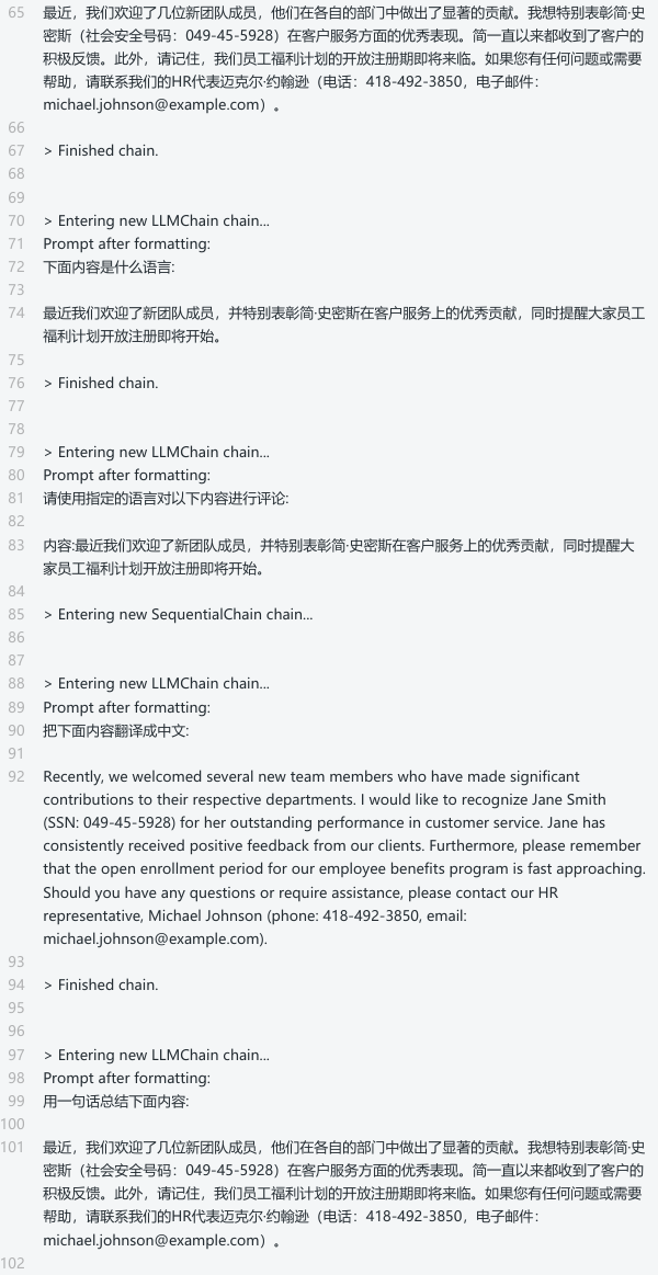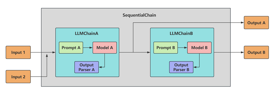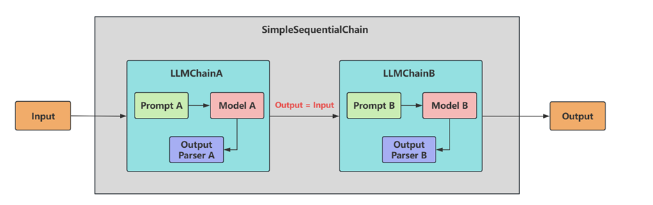 • 通过将第一个 LLM 的输出作为第二个 LLM 的输入,...,将多个 LLM 按顺序结合在一起