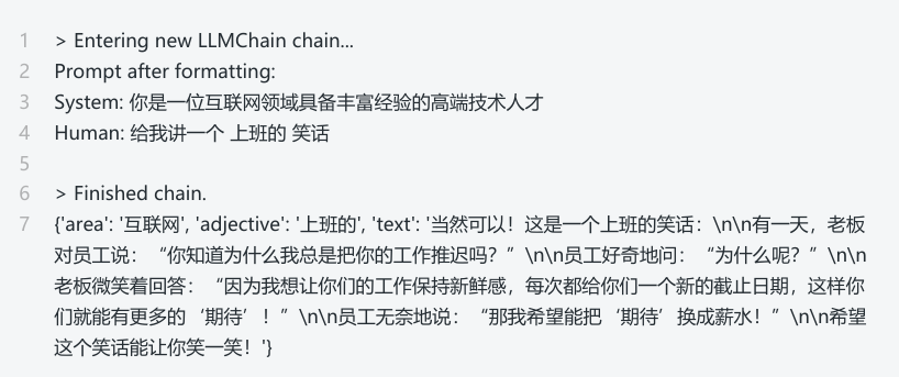 • chain :我们可以使用 | 运算符轻松创建这个 Chain。| 运算符在 LangChain 中用于将两个元素组合在一起。