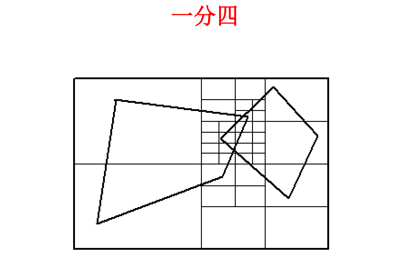 1、区域子分算法的由来:①Z缓存器算法,将像素孤立来考虑,未利用相邻像素之间存在的属性的连贯性,即区域的连贯性,所以算法效率不高;②区间扫描线Z缓存器算法仅利用了扫描线的连贯性。实际上,可见多边形至少覆盖了绘图窗内的一块区域,如果能将这类区域找出来,则避免了在每个像素处计算深度值,消隐问题也就解决了。