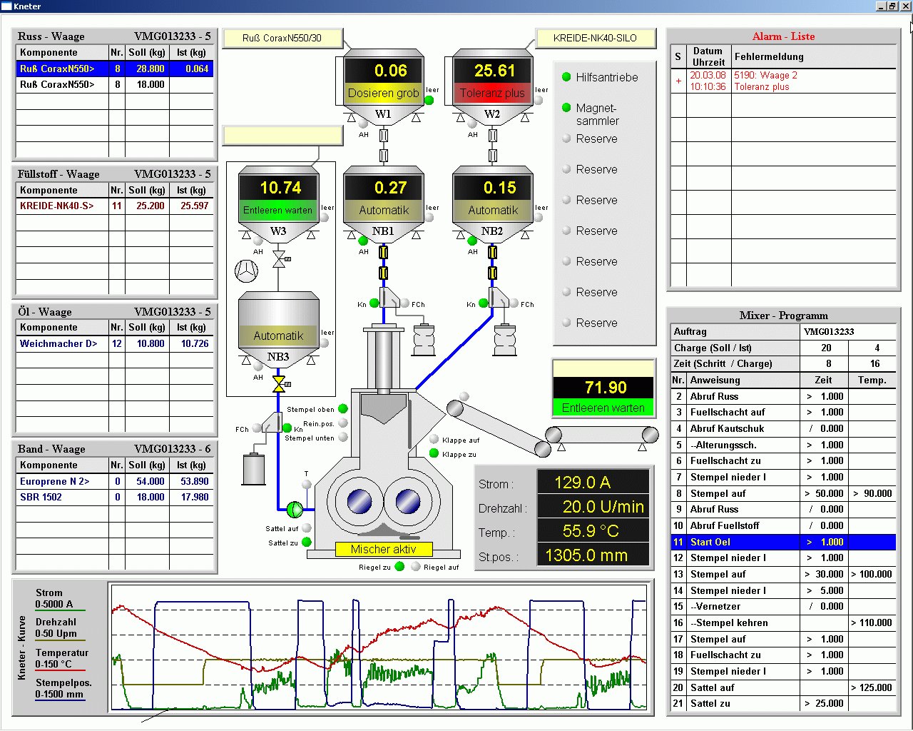 数据可视化呈现: 具备强大的动态图形能力,可精准展示工业生产核心数据。在橡胶行业,能实时呈现密炼机运行图形、硫化温度趋势曲线、胶料配方参数表、设备故障报警列表,实现炼胶工艺 "配方 - 称重 - 混炼" 全流程数据可视化;在化工行业可展示反应釜压力数据,能源行业可呈现机组能耗曲线,让各类工业数据直观可感。