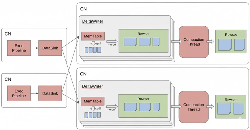 StarRocks 作为一款分布式列式数据库,底层采用类似 LSM-Tree 的存储结构:新写入的数据首先进入内存中的 memtable,经排序等处理后再由后台线程刷盘至持久化存储,并通过后续的 Compaction 将多个小文件合并为更大的有序文件。在常规规模的增量写入下,这套机制可以很好地兼顾写入性能与查询性能;但在大批量导入历史数据时,问题会被显著放大: