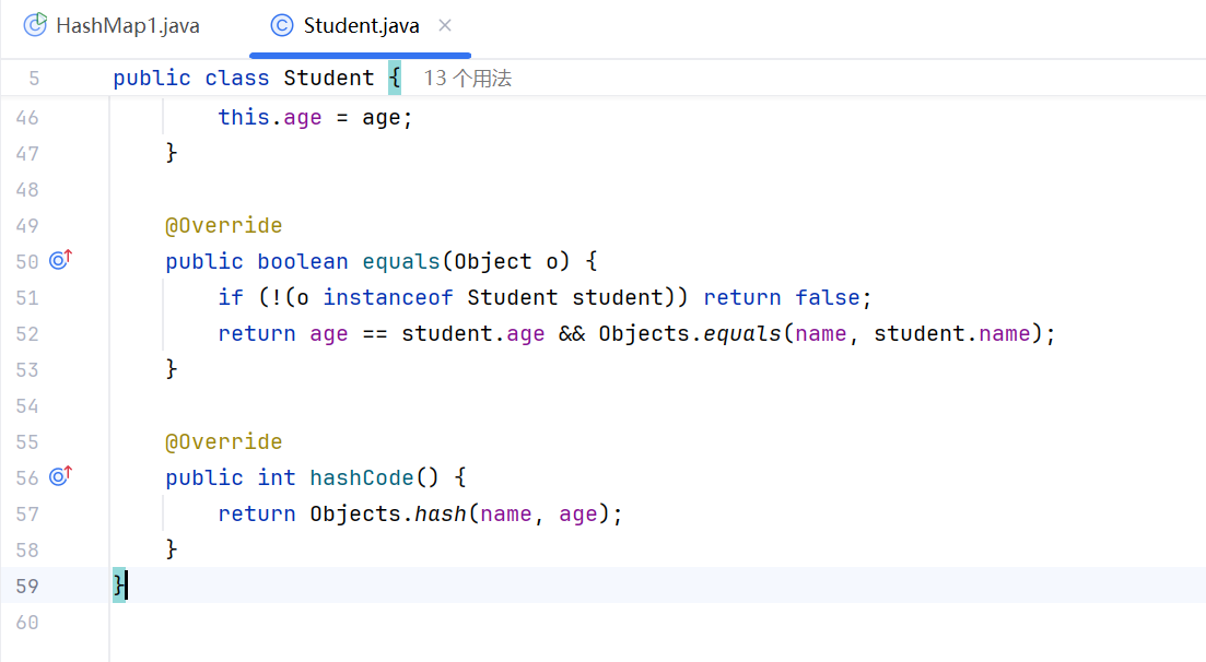 核心点:如果HashMap的键位置存储的是自定义对象,需要重写equals和hashcode