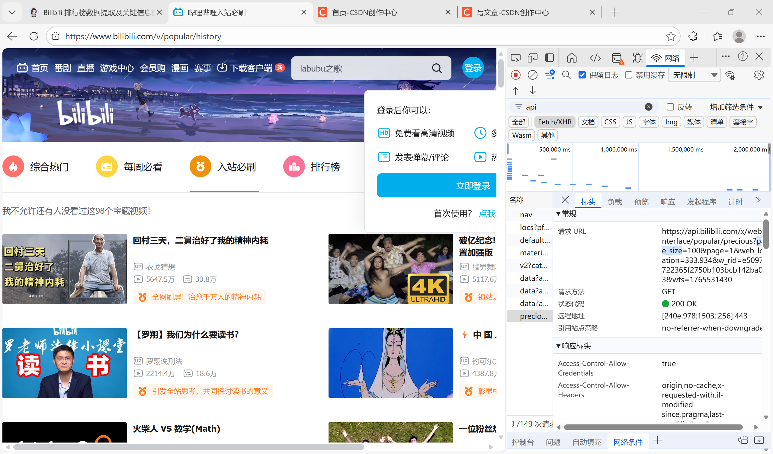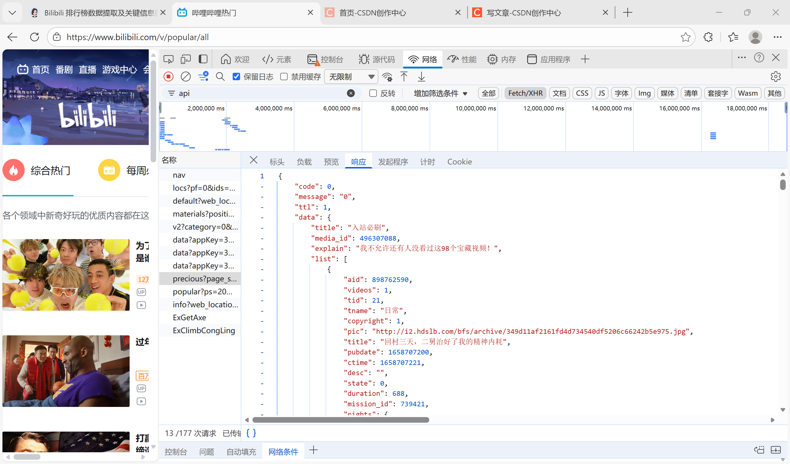 url2='https://api.bilibili.com/x/web-interface/popular/precious'