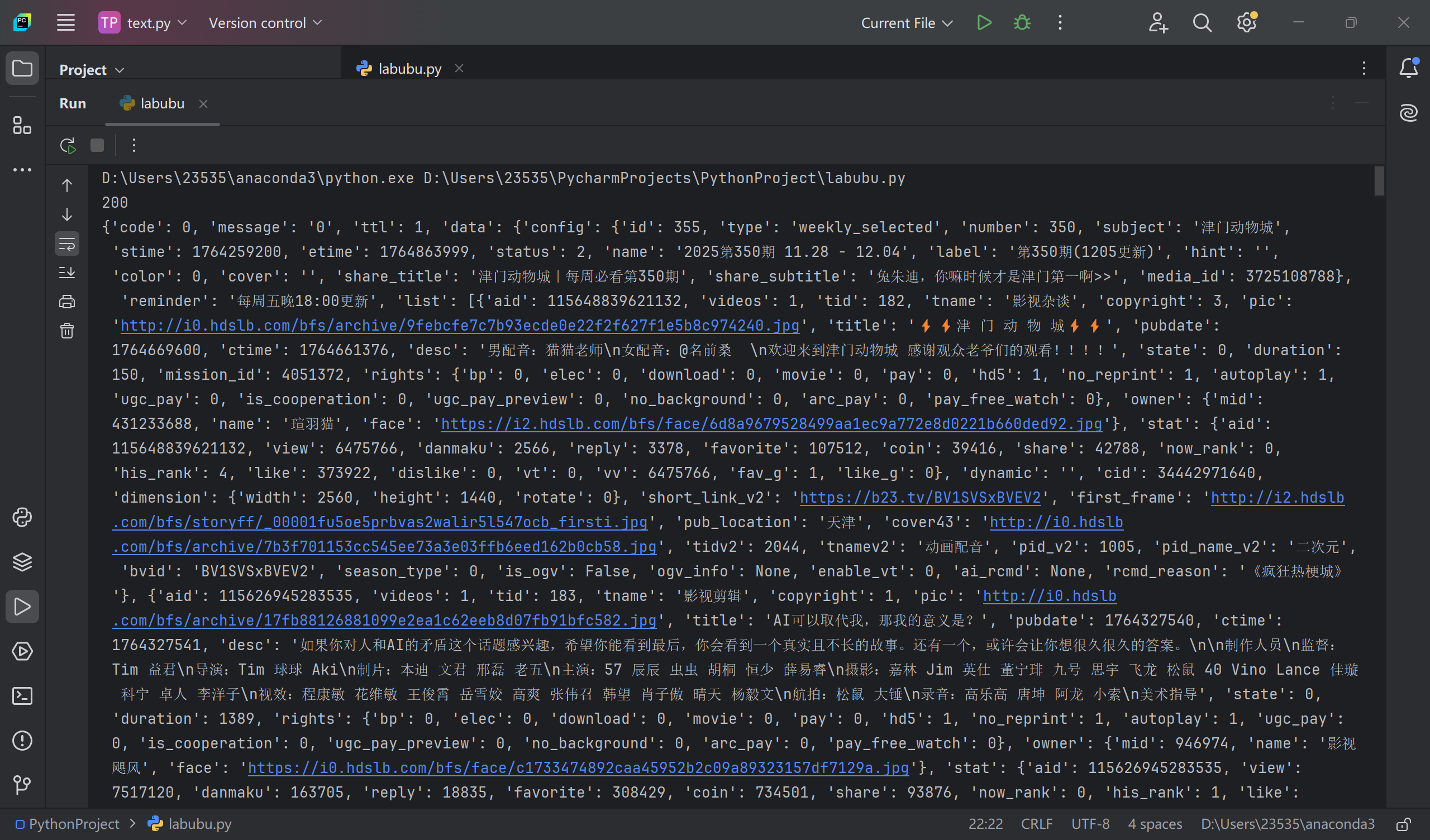 首先,有一点很重要的,我之前一直以为爬取的内容是响应的text文本里的内容,其实不是的,text里的内容是服务器返回的原始内容,是没有经过处理的,我们要对text进行json解析,解析成字典或者是列表
