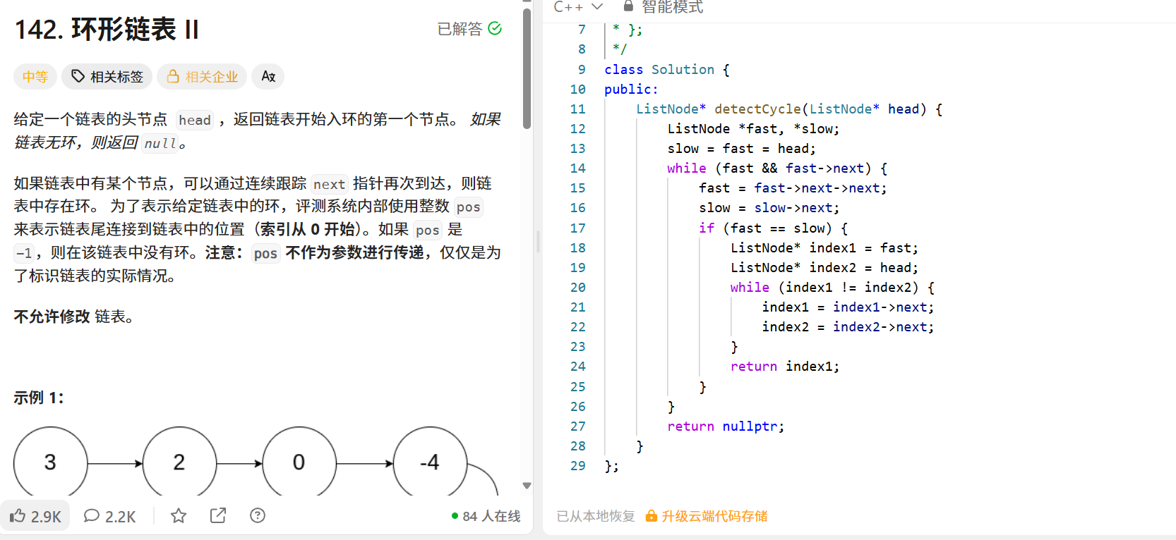 [4. 142. 环形链表 II](#4. 142. 环形链表 II)