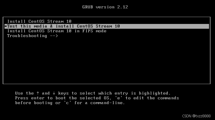 1.加载CentOS-Stream-10-latest-x86_64-dvd1系统,启动计算机,选择" Install CentOS Stream 10"。