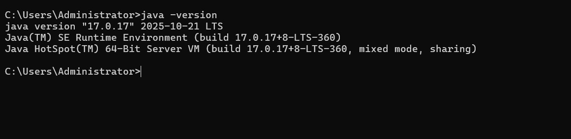Java(TM) SE Runtime Environment (build 17.0.17+8-LTS-360)