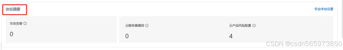 体检摘要主要涉及:攻击告警、云服务器漏洞、云产品风险配置 等的检测